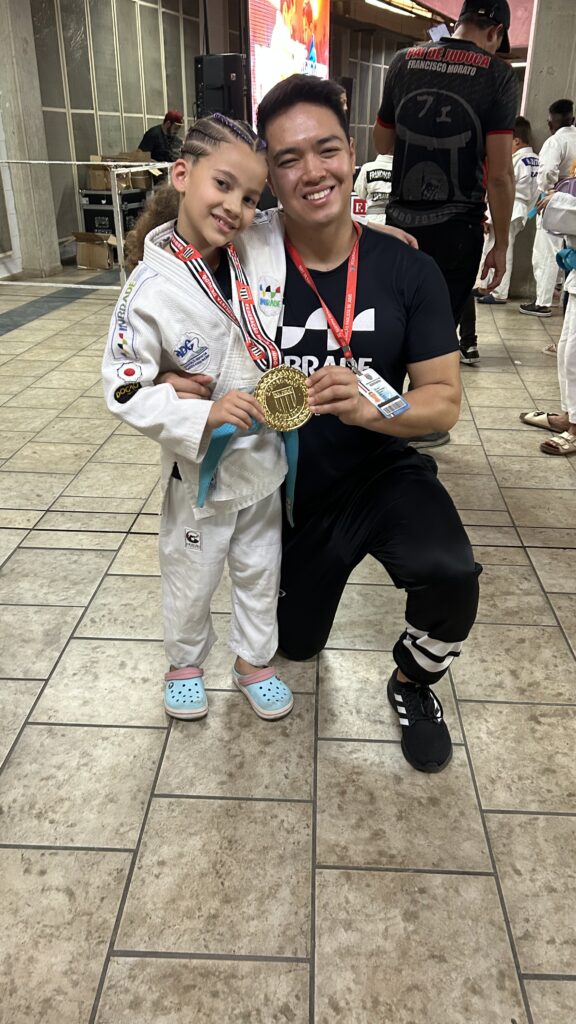 O segundo e último destaque é nossa Manuzinha, que lutou na categoria Sub-9 Ligeiro (-26kg). Manu, que conquistou vários títulos importantes este ano, não se intimidou e foi campeã paulista aspirante! Depois de três lutas até a final, ela jogou de waza-ri e pegou no chão, tornando todo o esforço durante o ano valer a pena.